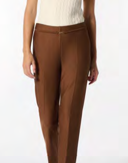 Pantalone di linea ampia in tessuto elasticizzato con piccola cinturina con catena centrale