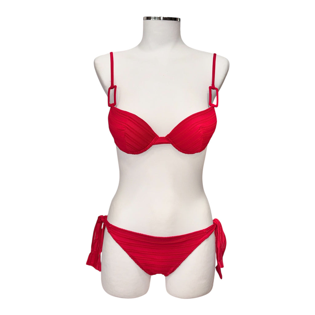 Bikini con coppa push-up in lycra rigata operata.