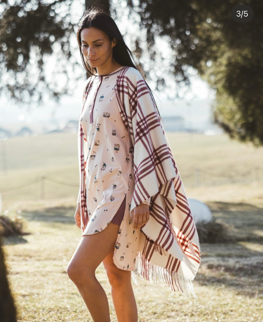Bellissima camicia do notte con stampa all over dai colori vivaci di deliziose casette stilizzate. Collo a serafino con contrasto colore e inserti sugli spacchi rendono questo capo unico nel suo genere. La vestibilità è comoda e confortevole. Il tessuto è un jersey stretch leggermente smerigliato, piacevole da indossare a diretto contatto con la pelle in linea con le nuove esigente per affrontare inverni sempre più caldi e miti. Lunghezza davanti 87 cm e dietro 94 cm.