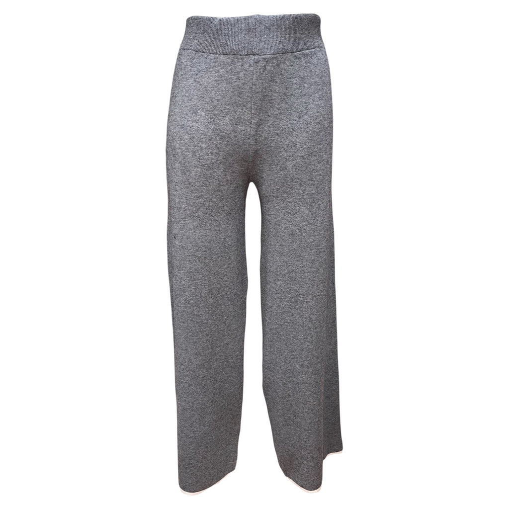 Pantalone in morbido filato misto viscosa con bordini in colore di contrasto.