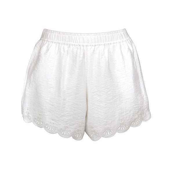 Pantaloncino in tessuto goffrato con smerlo ricamato sul fondo