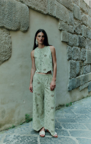 Pantalone lungo in sangallo di puro cotone