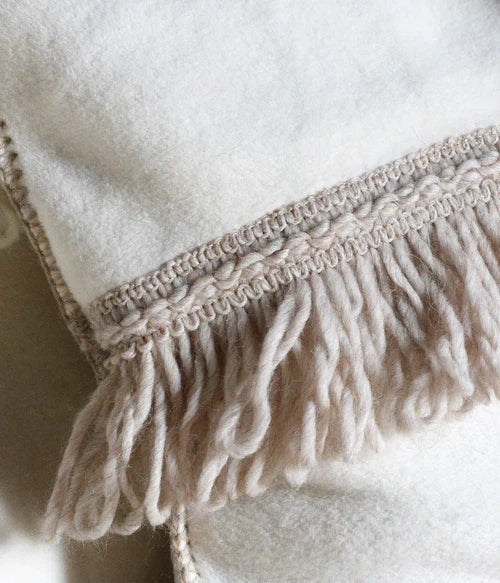 Le finiture artigianali, arricchite da delicate frange decorative tono su tono, trasformano questo plaid in un raffinato elemento decorativo dallo stile vintage, in grado di aggiungere un tocco bohémien al vostro arredamento.