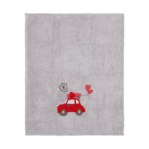 Plaid con l’applicazione di una simpatica macchinina in pile, con dettagli realistici in finta pelle. Attorno alla macchinina spiccano tanti cuoricini rossi e rosa, simbolo di amore e affetto. Ogni particolare è arricchito da ricami a tecnica Cornely, con la dolce scritta “I love you” ricamata in maniera raffinata. I toni caldi del rosa e del rosso, uniti ai dettagli delicati, rendono questo plaid perfetto per aggiungere un tocco di tenerezza e romanticismo alla tua casa o per fare un regalo speciale a una persona amata.