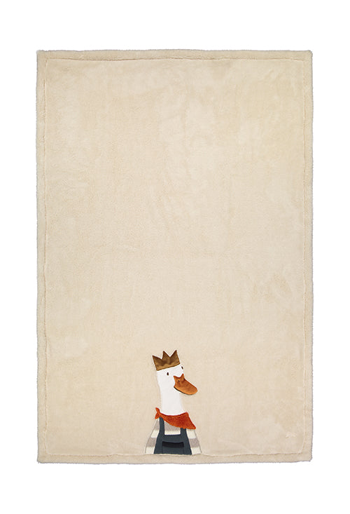 Questa coperta in morbido tessuto bussy effetto peluche è davvero adorabile! La combinazione di dettagli come la papera con la corona e l’abbigliamento in tricot la rende unica e invitante per i bambini. Grazie alle applicazioni morbide e calde, offre non solo un tocco estetico ma anche comfort ed è un’ottima idea per chi cerca continuità nel design e nel comfort per i propri piccoli.