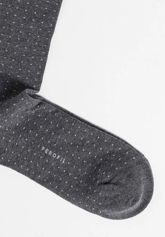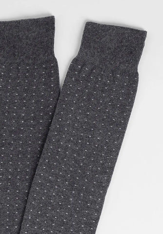 Calza lunga fantasia da uomo in morbido cotone e cashmere. Il disegno Puntaspillo la rende sofisticata ma discreta, ideale per ogni occasione. Leggera e calda allo stesso tempo.