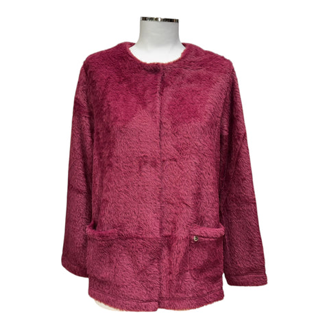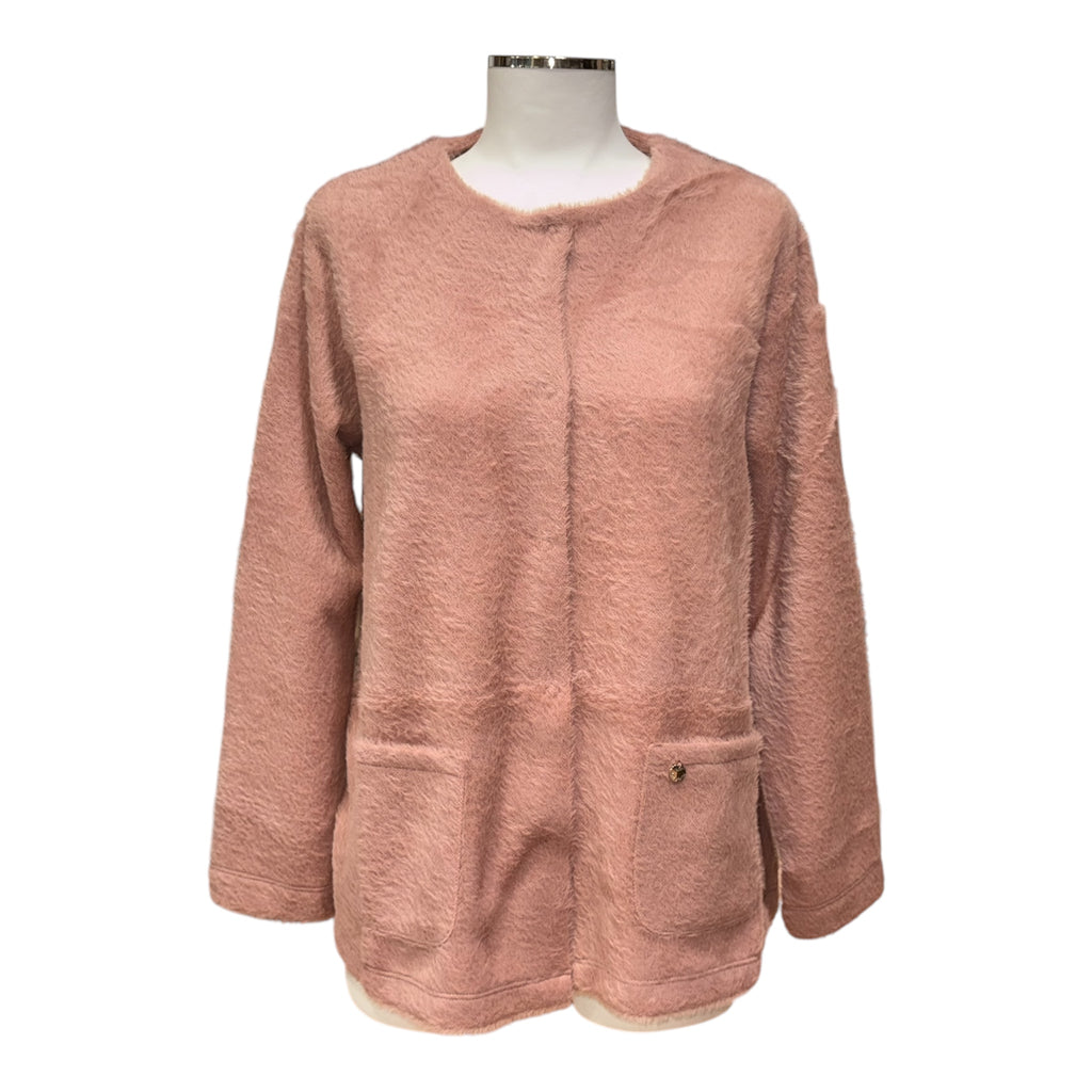 Per te che ami i capi caldi e morbidi da indossare appena alzata o mentre guardi un film sul divano, ma non ami le vestaglie questo cardigan è l’alternativa chic che fa per te. Il tessuto è una morbida pelliccetta calda e confortevole presentata in vari colori moda. Un capo che può essere benissimo indossato anche fuori casa sopra qualsiasi tipo di completo. Lunghezza 70 cm.