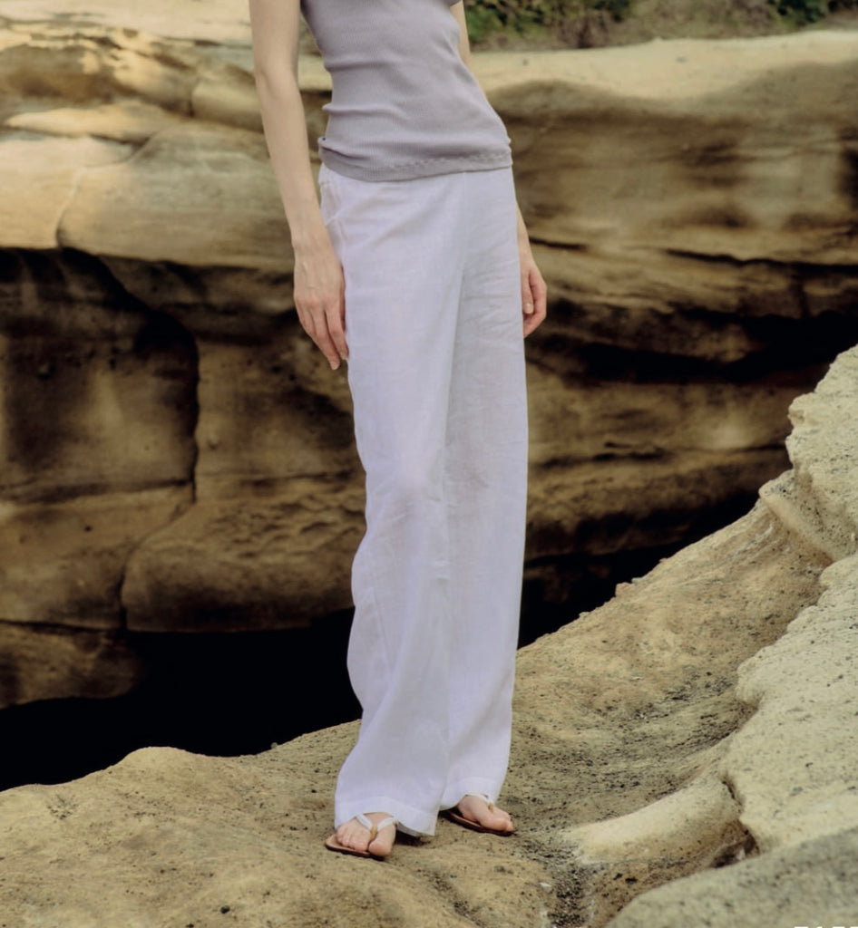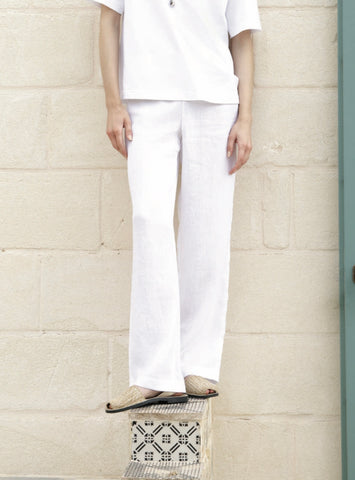 Pantalone tinta unita in freschissimo tessuto di puro lino.