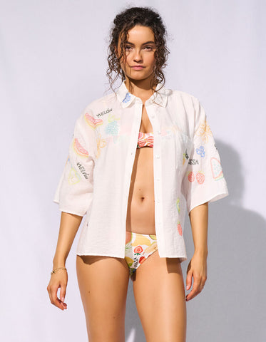 Camicia Beach realizzata in tessuto goffrato che cattura la freschezza dell'estate. Arricchita da delicati ricami a tema marino che evocano l'atmosfera della costa, perfetta per chi ama lo stile casual con un tocco di eleganza. Il tessuto goffrato garantisce una texture particolare e una vestibilità confortevole, ideale per le giornate calde. I dettagli ricamati aggiungono personalità e carattere al capo, rendendolo versatile da indossare sia al mare che in città. Un'opzione sofisticata per chi desidera un capo che unisca comfort e stile marino.