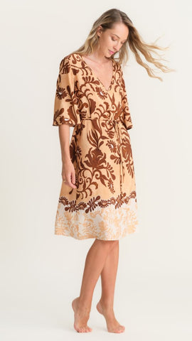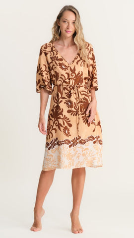 Questo abito midi è il capo perfetto per l’estate, pensato per unire comfort, stile e praticità in ogni occasione. Realizzato in 100% viscosa, è leggero, fresco e piacevole sulla pelle, ideale sia per le giornate in città che per le vacanze al mare. La fantasia astratta dal gusto classico ma sempre elegante rende questo vestito raffinato e facile da indossare, mentre la manica a metà braccio offre una vestibilità comoda e versatile. La cinturina in vita permette di valorizzare la silhouette adattando l’abito alla propria forma, creando una linea femminile e armoniosa. La balza sul fondo dell’abito, nella stessa fantasia ma in una variante di colori diversa, dona movimento e leggerezza al look, aggiungendo un tocco di dinamismo e stile. Questo abito in viscosa è la scelta ideale per chi cerca un vestito elegante ma pratico, perfetto per il tempo libero, le passeggiate in città o le giornate al mare.
