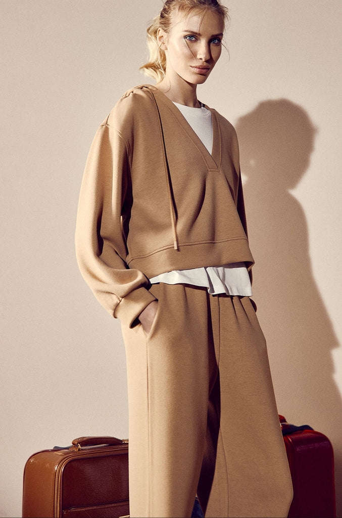 Questo completo tuta in scuba unisce comfort e stile per ogni occasione quotidiana. Il pantalone morbido con elastico in vita assicura una vestibilità perfetta mentre la felpa con cappuccio aggiunge un tocco pratico e moderno. Completa il look la t-shirt giromanica in tinta unita, leggera e versatile. Ideale per passeggiate e momenti di relax, questo completo è la scelta perfetta per chi cerca comodità senza rinunciare all’eleganza casual.