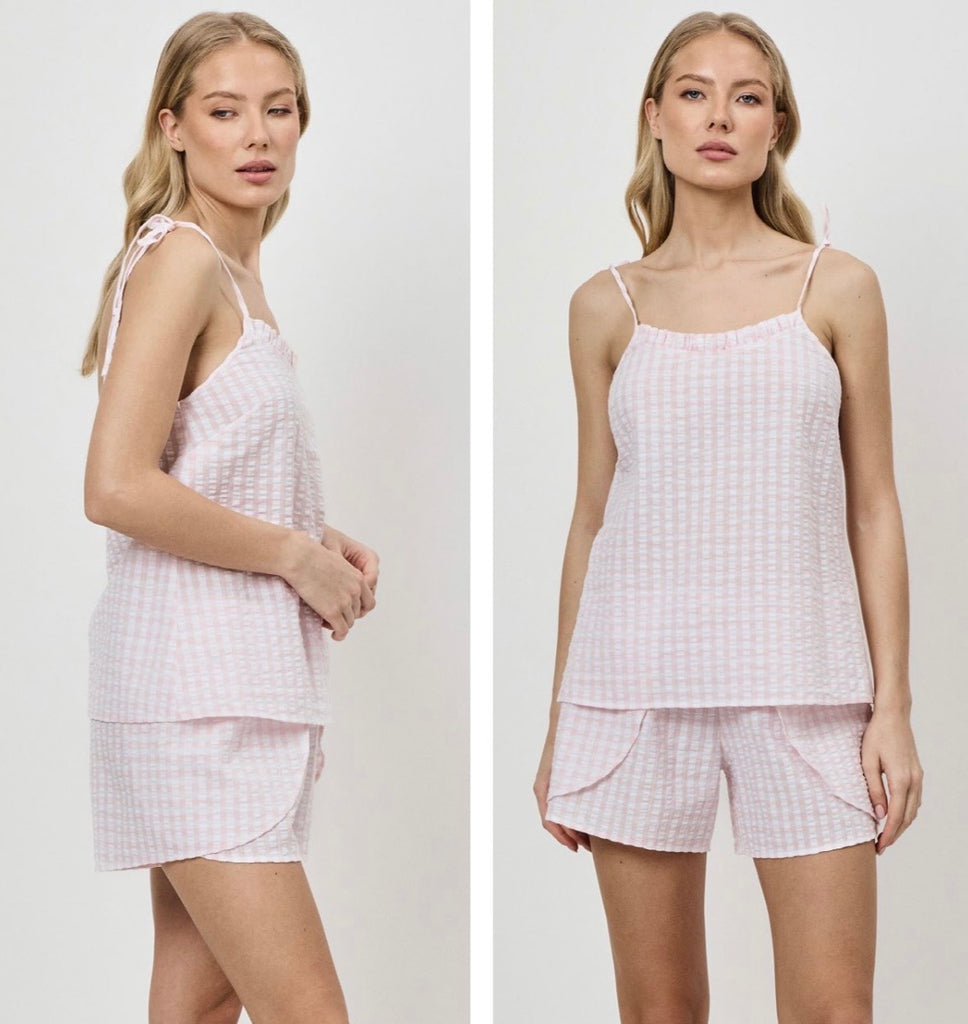 Pigiama corto con bretelline sottili in tessuto goffrato a righe