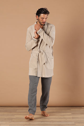 Giacca da camera calda ed elegante con sottile piping in tono. Perfetta per l’uomo che desidera essere sempre impeccabile, il modello ha anche tutti i vantaggi e la comodità dei capi intramontabili.