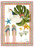 Asciugapiatti in puro lino stampato con disegni che richiamano l'estate.