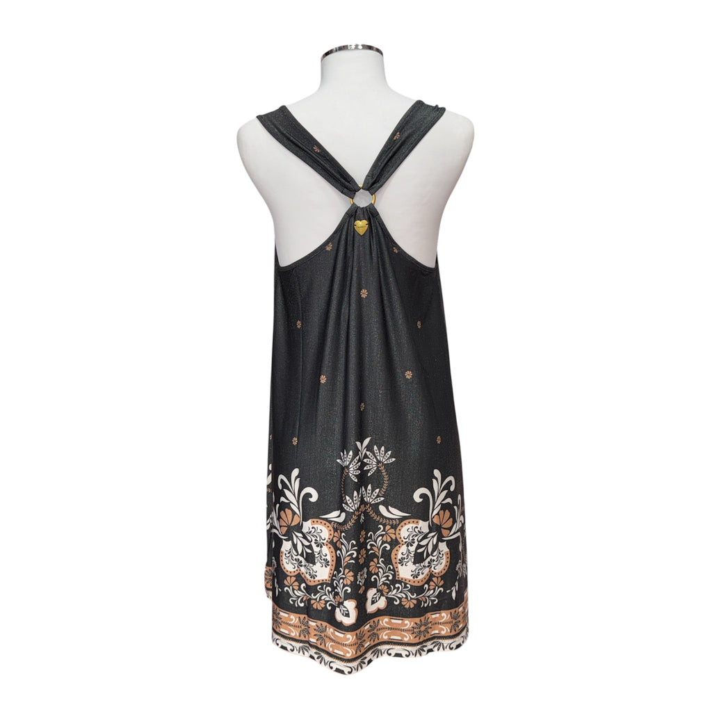 abito corto smanicato, leggermente lurex, incrociato sul retro