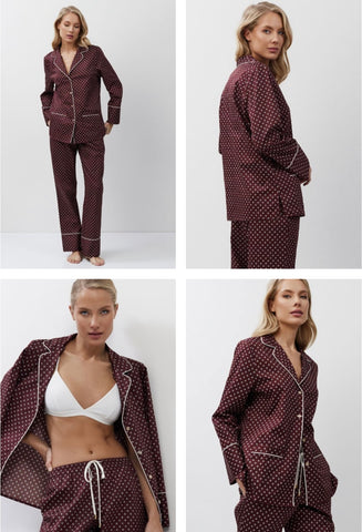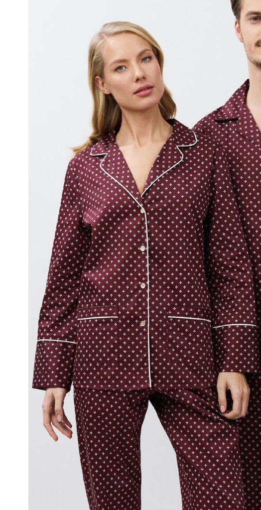 Pigiama di linea maschile fantasia cravatta in tessuto di cotone con profili in contrasto e tasche a toppa sul fondo