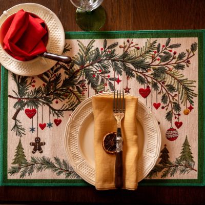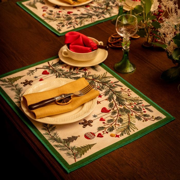 2 Tovagliette Americane Natalizie Rudy confezionate in un sacchetto di tessuto della stessa fantasia