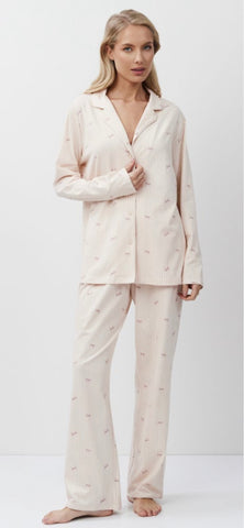Pigiama di linea maschile a righe sottili con piccoli nodi d'amore in jersey di cotone con profili in raso