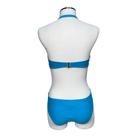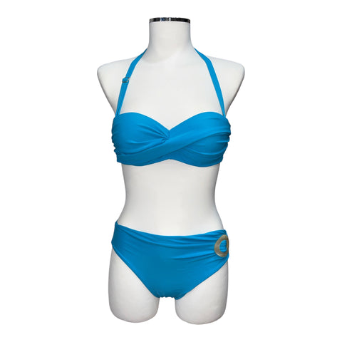 Bikini a fascia tinta unita con coppa a caramella. Ha un intreccio centrale, la bretella regolabile e removibile e si chiude con gancio sul retro. Ha una vestibilità perfetta anche senza bretella. COPPA C