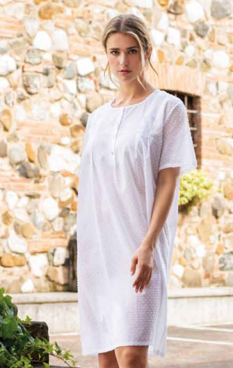 Camicia da notte mezza manica , tinta unita, in leggerissimo e freschissimo tessuto plumetis.