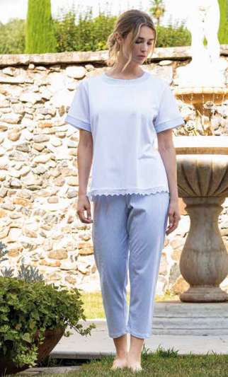 Pigiama mezza manica gamba lunga in jersey di cotone.